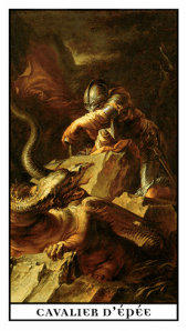 Traveler of the Paths of Love Card Number: 35 In a Reading He rides the road that takes him beyond thought, conquering violence; he is just and eager to do the right thing. He pursues the paths of love and when he reaches the Kingdom of Cups, he becomes the Ace. He brings good news. Negatively, He can be a forceful personality and sometimes brash, but his intentions are still benevolent. He might have a tendency to preach or be a little self-righteous. Multiple Knights in a Spread: 2 Knights represent approaching business opportunities. 3 Knights reveal of a group of fashionable men. 4 Knights are a symbol of the world governments and important negotiations and power meetings. |