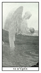 Recovery, Travel, The Pleasure of Thought Card Number: 27 A angel holds in infant, traveling to a new place. Numerically, the 6 is the realization of beauty, unity of the element. Keywords: Rest, Recovery, Healing, Relaxation, Vacation, Travel, Decompressing. In a Reading The beauty of thought, the pleasure of thinking, the playful mind realized. Poetry, Music, Art are born in this card. Someone of like mind emerges. A time for recovery, getting over depression, a time to start the healing process after a deep sadness, getting over a tough time, increasing exercise and improving diet, working on your physical/mental health. To feel hope again. Travel, camping, time for a change of scenery. A journey, physical, mental, and/or spiritual. A journey across water either physically or metaphorically. Multiple Sixes in a Spread: 3 sixes are an omen of coming into a sum of money or material gain. 4 sixes symbolize a emergence of passion or pleasure. |